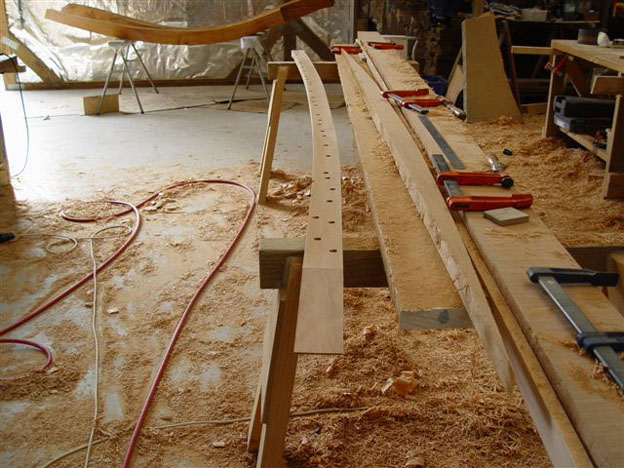 Underside of stringer showing recess for rove heads and amount of edge shape